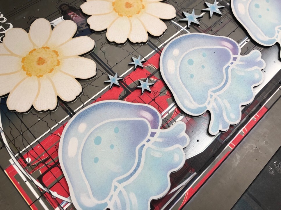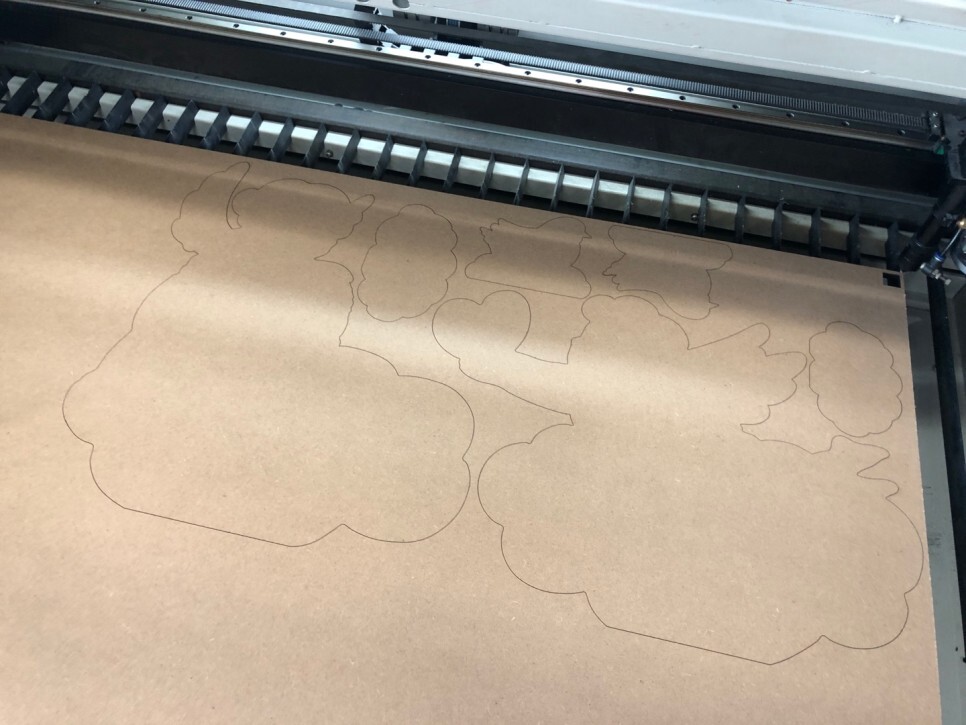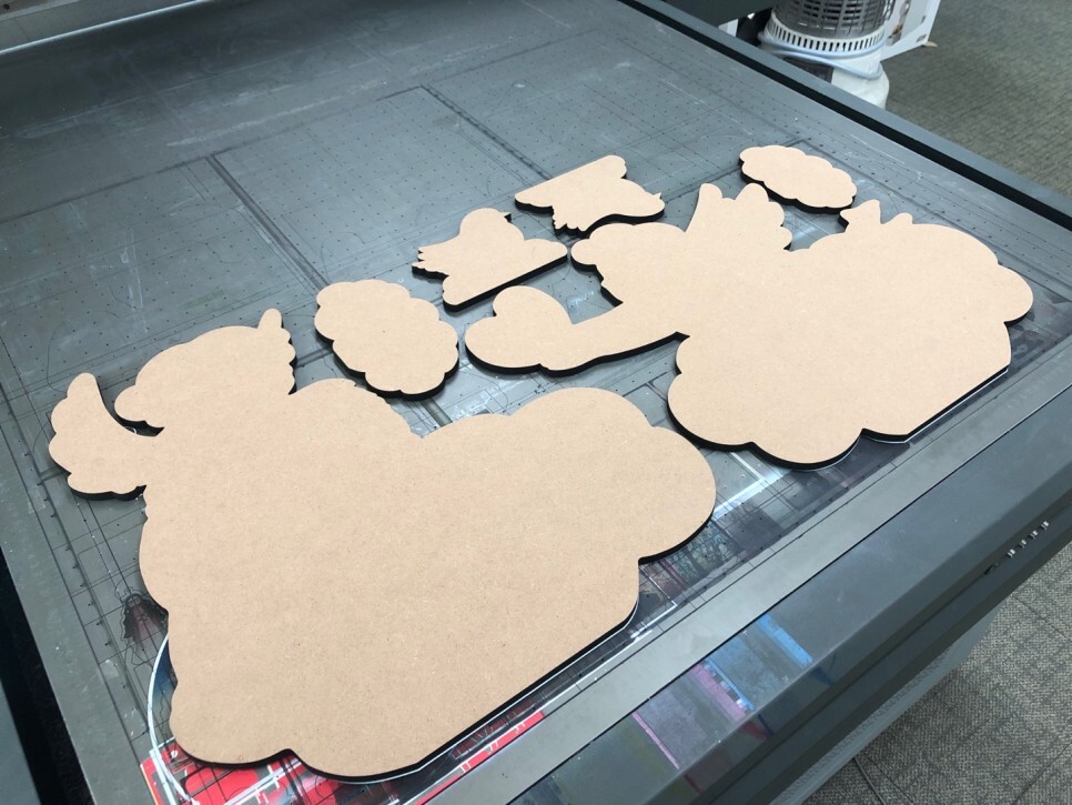 MDF판들을 틀에맞게 잘 올려준 후, UV인쇄를 진행하고나면,,,!