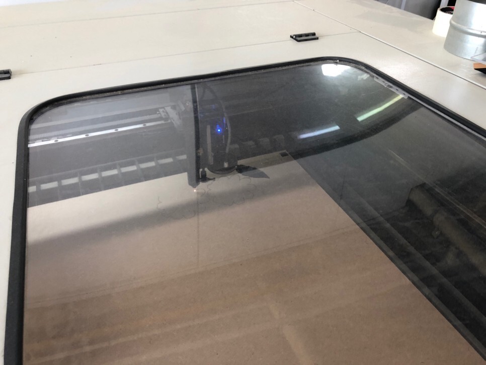 레이저 가공을 진행할땐 위에 덮개를 꼭 닫고 진행해야해요! 그렇지않으면